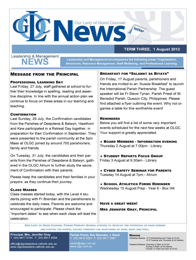 TERM THREE, 1 August 2012 Leadership & Management NEWS Leadership and Management encompasses the following areas: Organization, Structures, Resource Management, Staff Wellbeing, and Professional Learning.