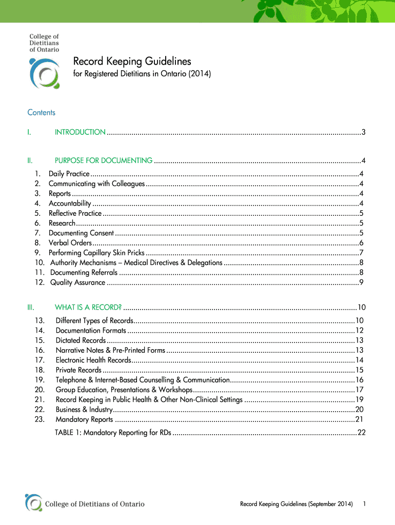 Get the free BRecordb Keeping Guidelines - College of dietitians - collegeofdietitians