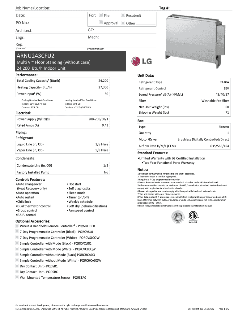 Fill out your arnu243cfu2 - lg-vrfcom online with pdfFiller!
