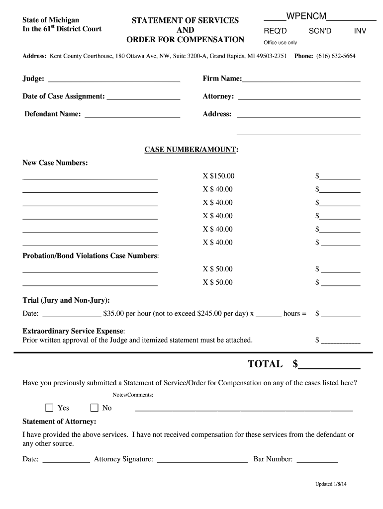 Get the free State of Michigan STATEMENT OF SERVICES WPENCM In the 61 - grcourt