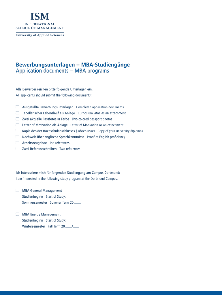 Get the free Bewerbungsunterlagen MBA-Studiengnge Application - en ism