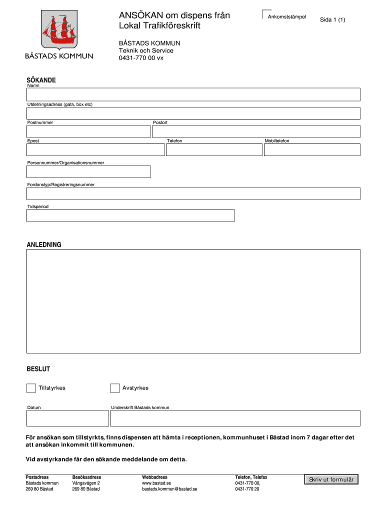 Get the free ANSKAN om dispens frn Sida 1 1 Lokal Trafikfreskrift - bastad