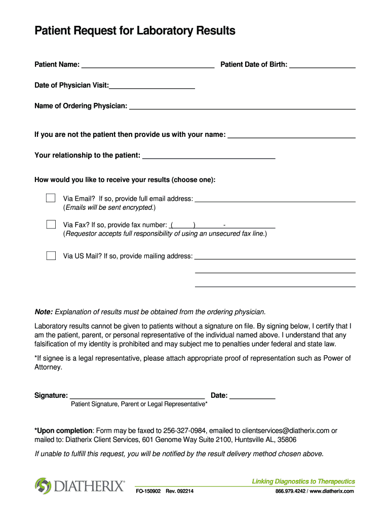 Get the free Patient Request for Laboratory Results - bDiatherixb