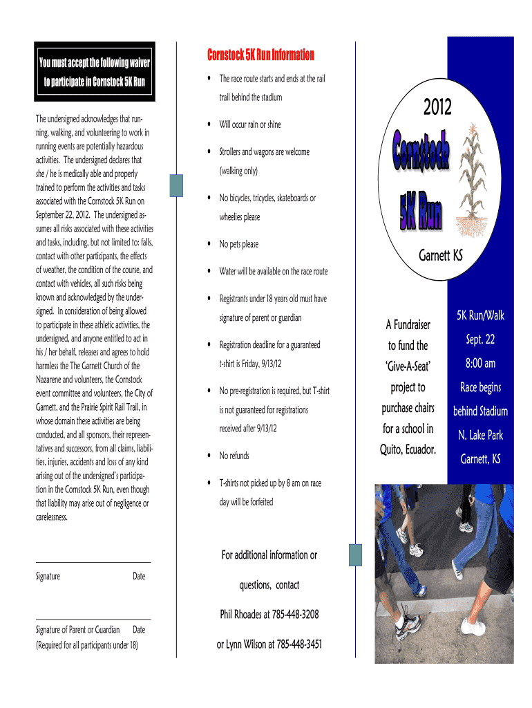 All participants of the running event in Garnett, Kansas are required to file run broch - experiencegarnettks.