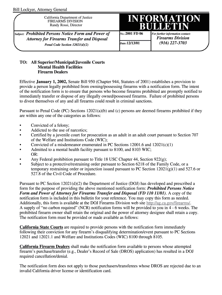 Purpose and Benefits of the California Prohibited Persons Notice Form