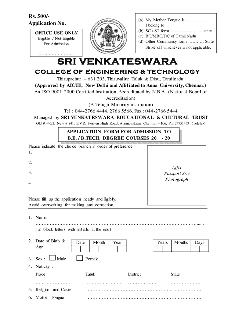 Get the free Application Form for Admission to B.E / B.Tech. - Sri Venkateswara ...