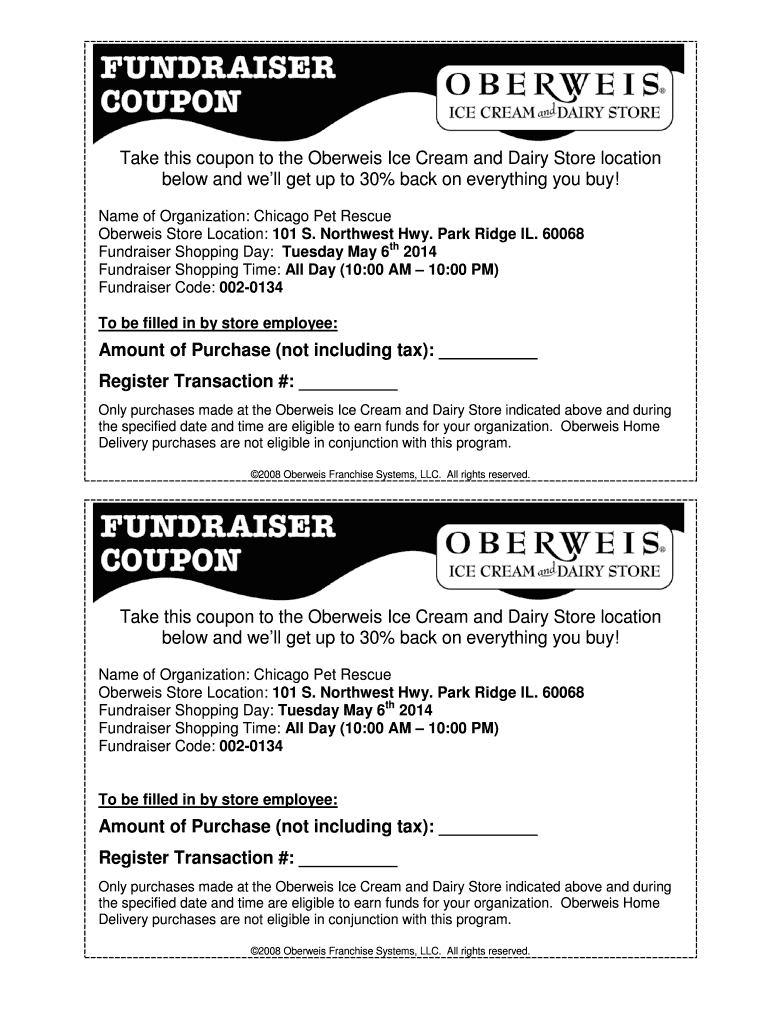 Take this coupon to the Overwash Ice Cream and Dairy Store location below and well get up to 30% back on everything you buy! Name of Organization: Chicago Pet Rescue Overwash Store Location: 101 S.