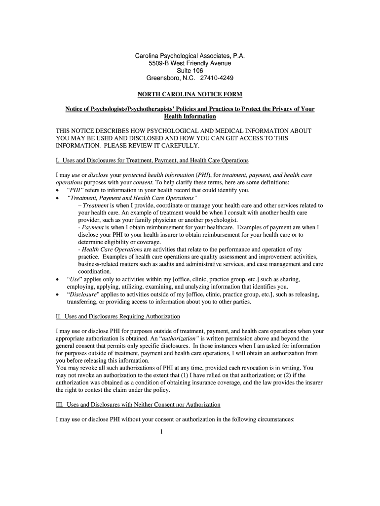 Get the free NORTH CAROLINA NOTICE FORM Notice of Psychologists