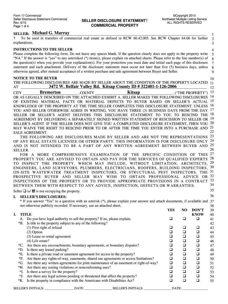 Get the free Commercial Seller Disclosure Statement