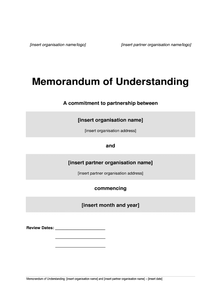 Insert organization name×logo insert partner organization name×logo Memorandum of Understanding A commitment to partnership between insert organization name insert organization address and insert