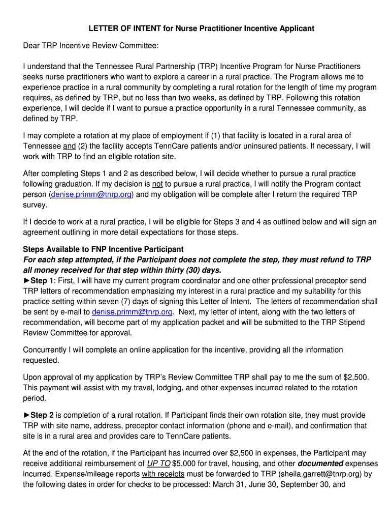 Get the free Letter of Intent - Nurse Practitioners - Tennessee Rural Partnership - tnrp