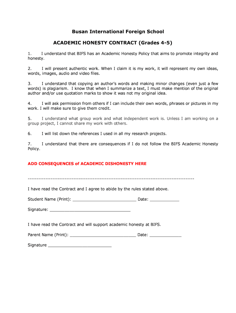 Get the free Busan International Foreign School ACADEMIC HONESTY - bifskorea