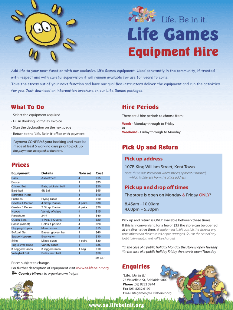 Life. Be in it. TM Life Games Equipment Hire Add life to your next function with our exclusive Life Games equipment. Used constantly in the community, if treated with respect and with careful supervision
