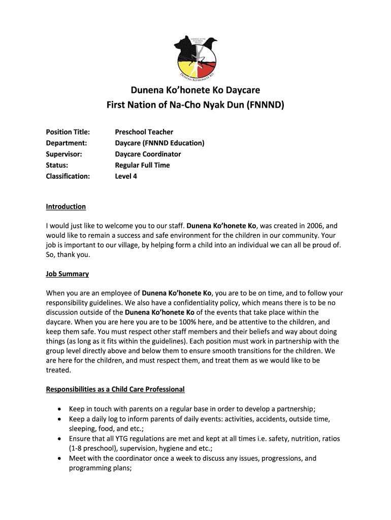 Get the free Dunena Ko'honete Ko Daycare First Nation of Na-Cho Nyak Dun ...