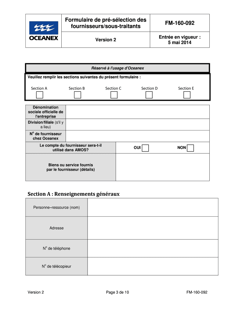 Formula ire DE protection DES fournisseurs×soustraitants FM160092 Version 2 Entire en liqueur : 5 Mai 2014 Nous vows reversions DE vote intro en want Que Fournier potential d 'Ocean ex. Akin de moon