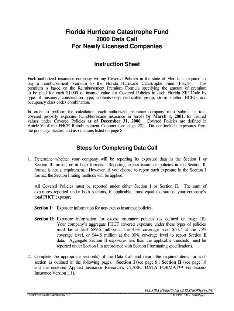 How to fill out Florida Hurricane Catastrophe Fund 2000 Data Call?