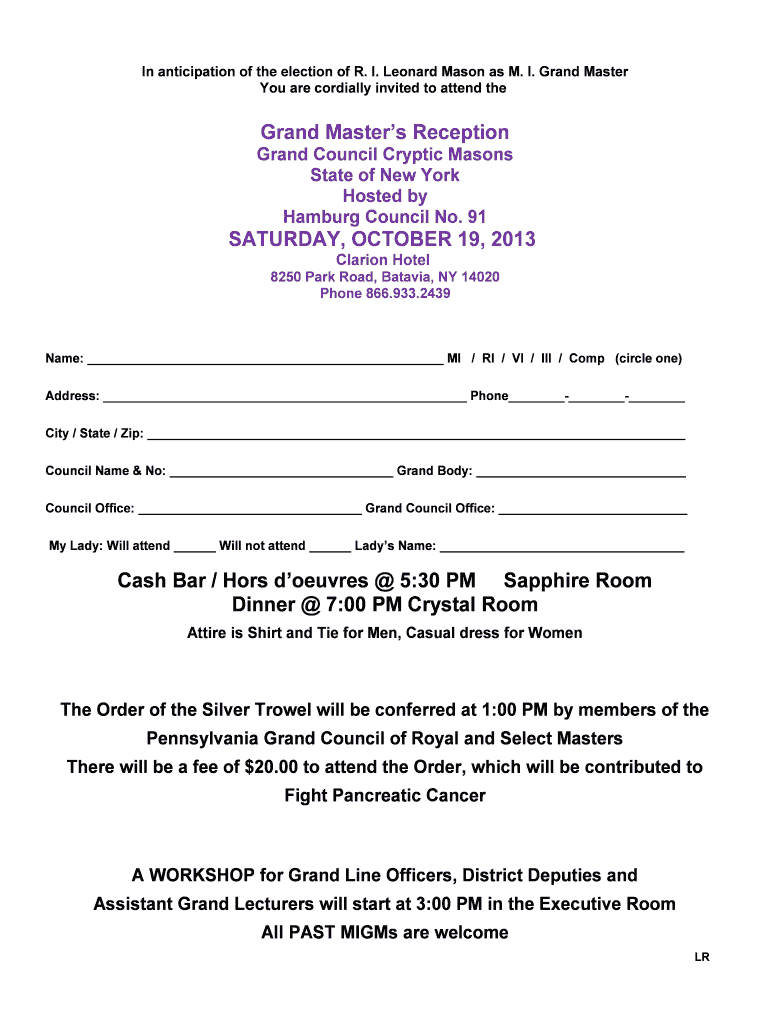 Get the free Grand Masters Reception Grand Council Cryptic Masons - nycryptic