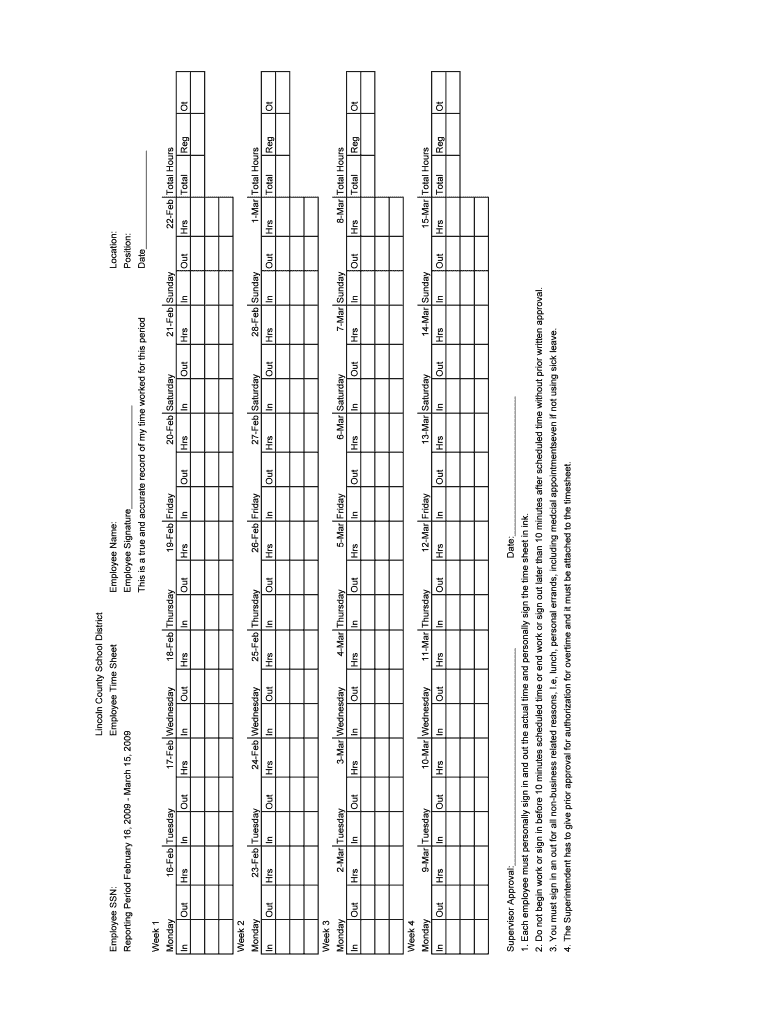 Lincoln County School District Out Out Out In Out Hrs In Out 9Mar Tuesday Hrs 2Mar Tuesday Hrs 23Feb Tuesday In 16Feb Tuesday Hrs Out In Out Hrs In Out 10Mar Wednesday Hrs 3Mar Wednesday Hrs 24Feb
