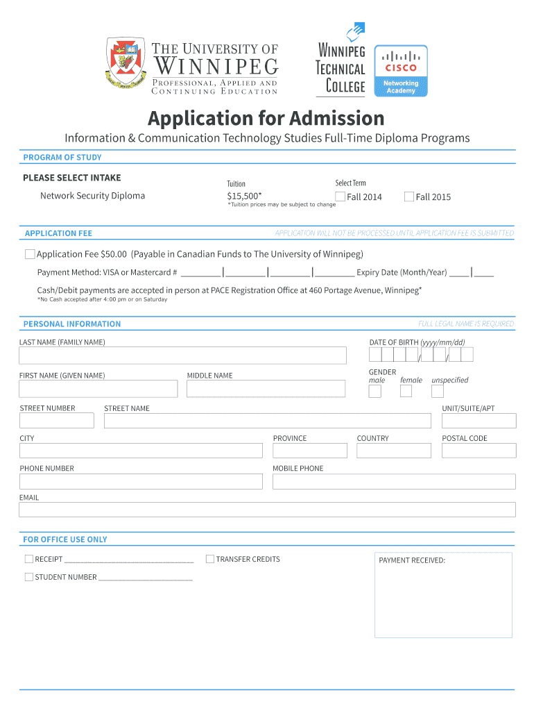 Professional, Applied and C on t i n u i NG Educ at ion Networking Academy Application for Admission Information & Communication Technology Studies Halftime Diploma Programs PROGRAM OF STUDY Please