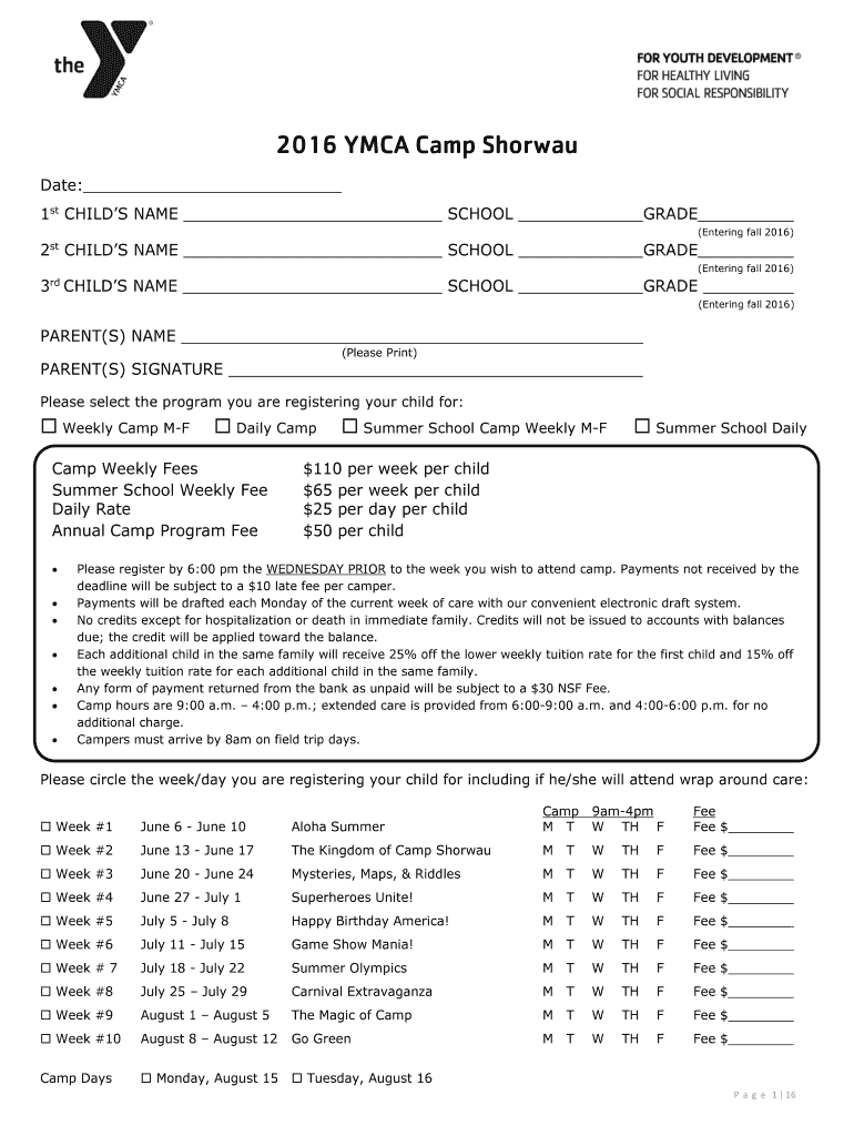 How to Fill Out 2016 YMCA Camp Shorwau: