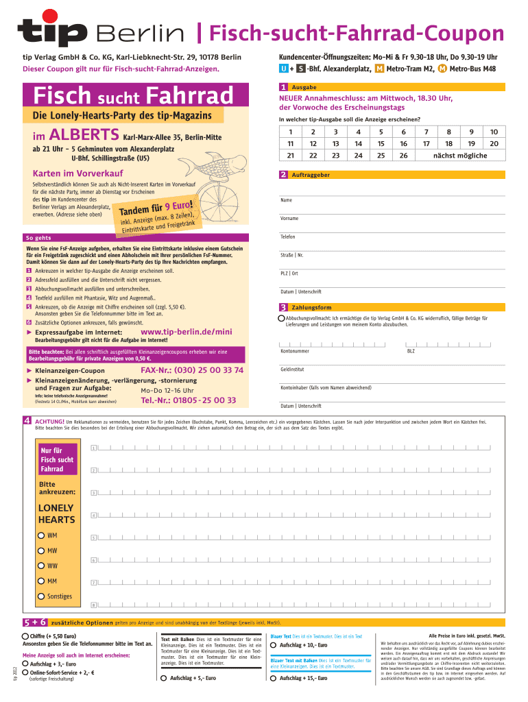 Holen Sie sich kostenlos Btipb Verlag GmbH amp Co KG Karl-Liebknecht-Str 29 10178 - tip-berlin
