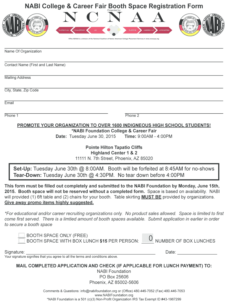 Get the free NABI College Career Fair Booth Space Registration Form - nabifoundation