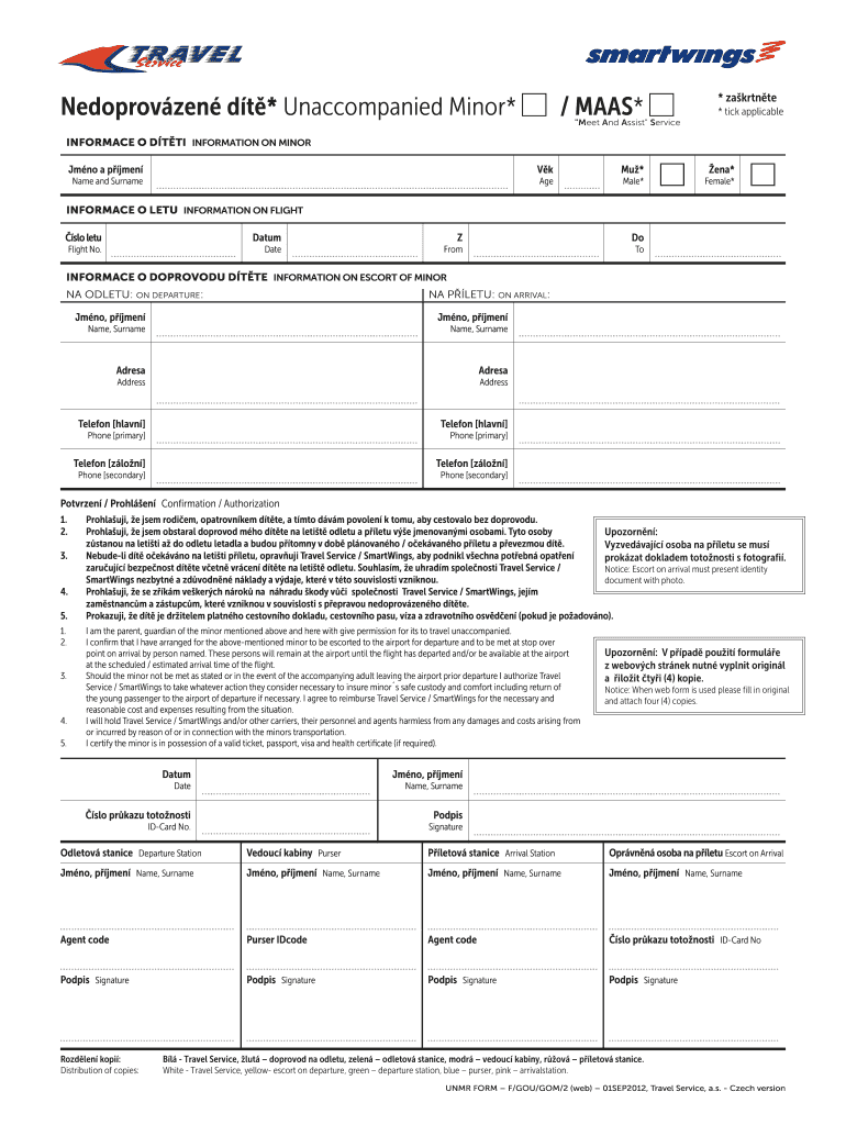 Nedoprovzen DT* Unaccompanied Minor* / MASS* * Zárate * tick applicable “Meet And Assist Service INFORMAL O DTI INFORMATION ON MINOR Juno a pj men VK Mu* end* Name and Surname Age Male* Female*