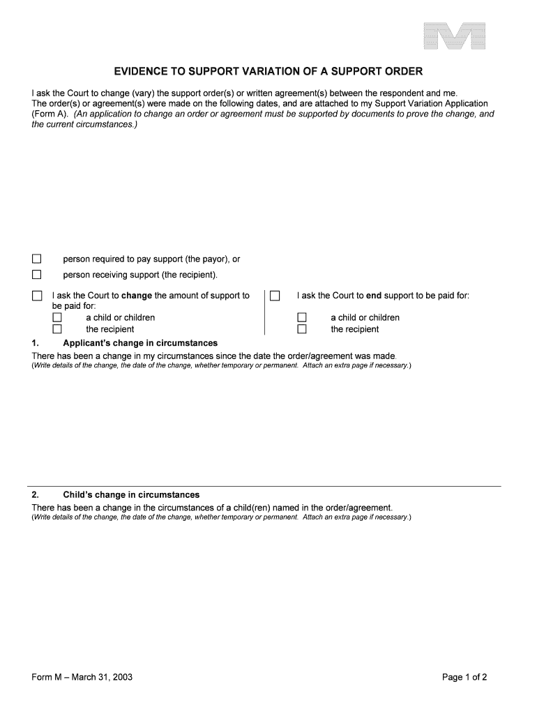 The Support Variation Application Form is a legal document used by residents of Canada to request modifications to existing support orders or agreements based on new circumstances.
