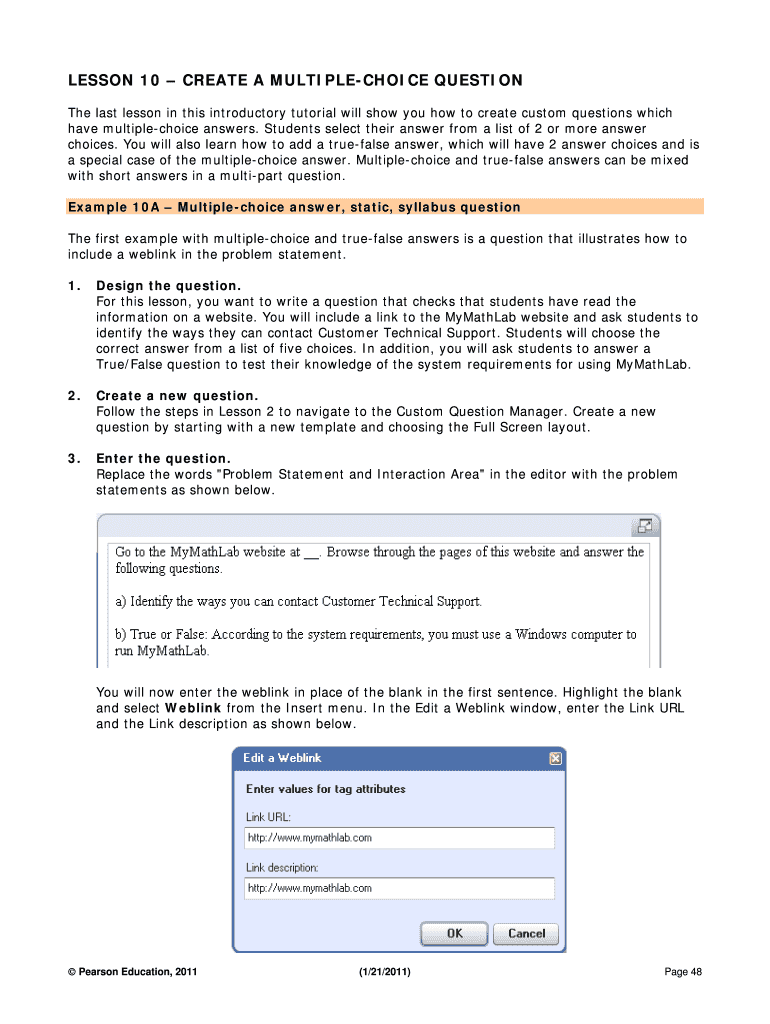 LESSON 10 CREATE A MULTIPLECHOICE QUESTION The last lesson in this introductory tutorial will show you how to create custom questions which have multiple choice answers. Students select their answer