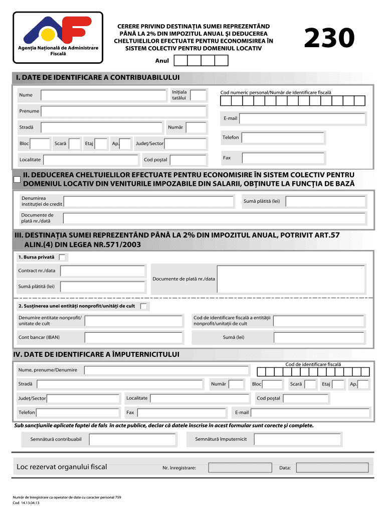 Agenda National de Administrare Fiscal 230 SEVERE DRIVING DESTINATION SUM EI REPRESENTED IN LA 2% DIN IMPOLITE ANNUAL I DEDUCE REA CHELTUIELILOR EFFECTUATE PE NTRU ECONOMISIREA N SYSTEM COLLECTIVE