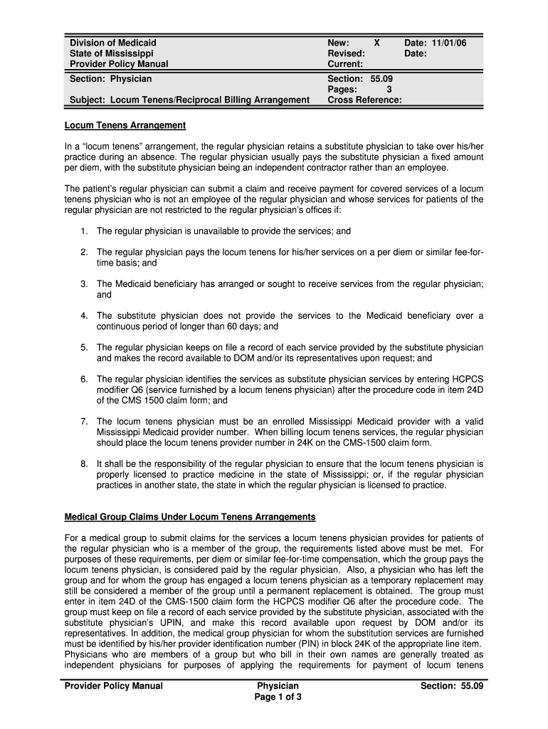 Cross-Reference:Subject: Locum Teens×Reciprocal Billing ArrangementDate: