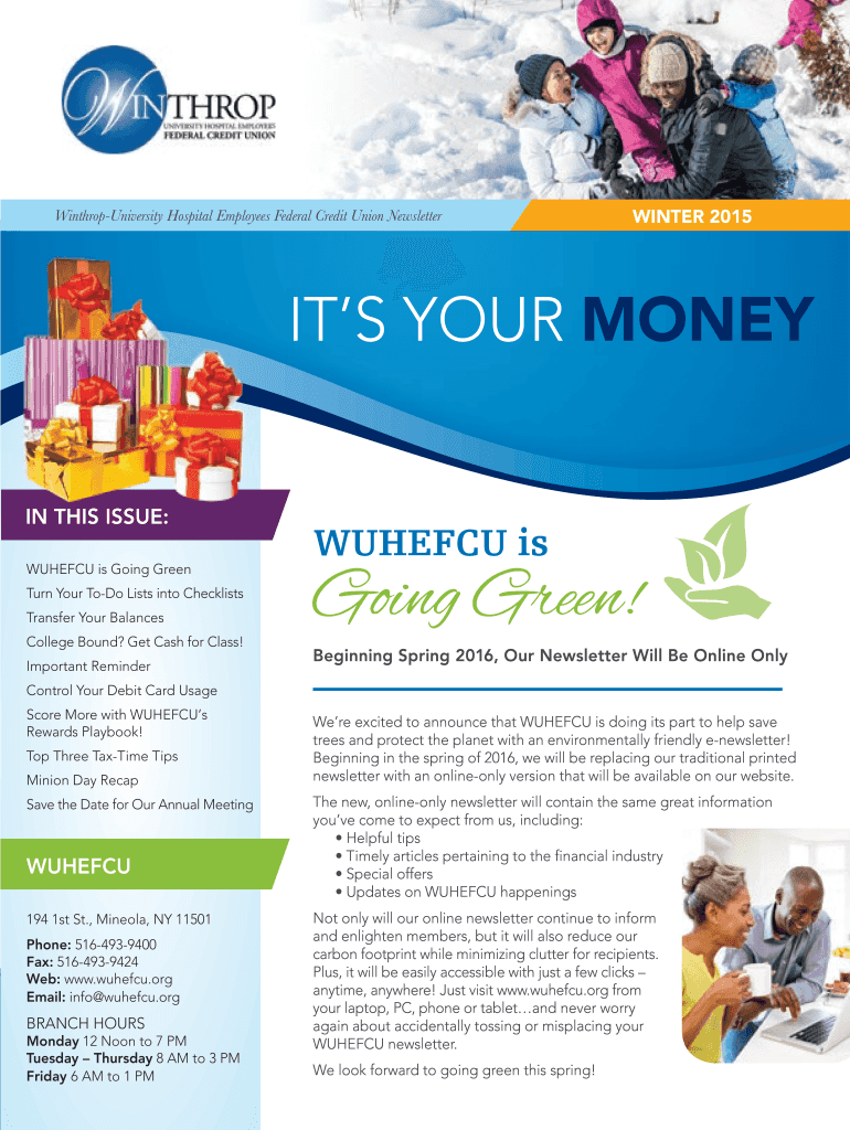WinthropUniversity Hospital Employees Federal Credit Union NewsletterWINTER 2015ITS YOUR MONEY