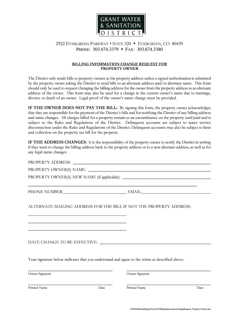 Get the free BILLING INFORMATION CHANGE REQUEST FOR - grantwaterandsan