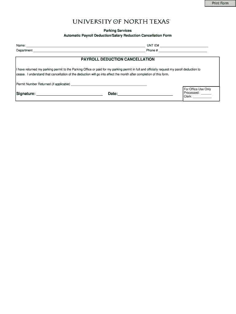 Automatic Payroll Deduction×Salary Reduction Cancellation form×b ... I have BR returned my parking permit to the Parking Office or paid for×b my parking permit in BR full ...
