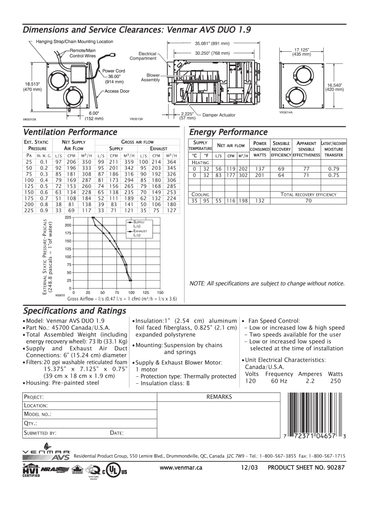 Product Sheet Venmar Avs is not the form you're looking for?Search for another form here.