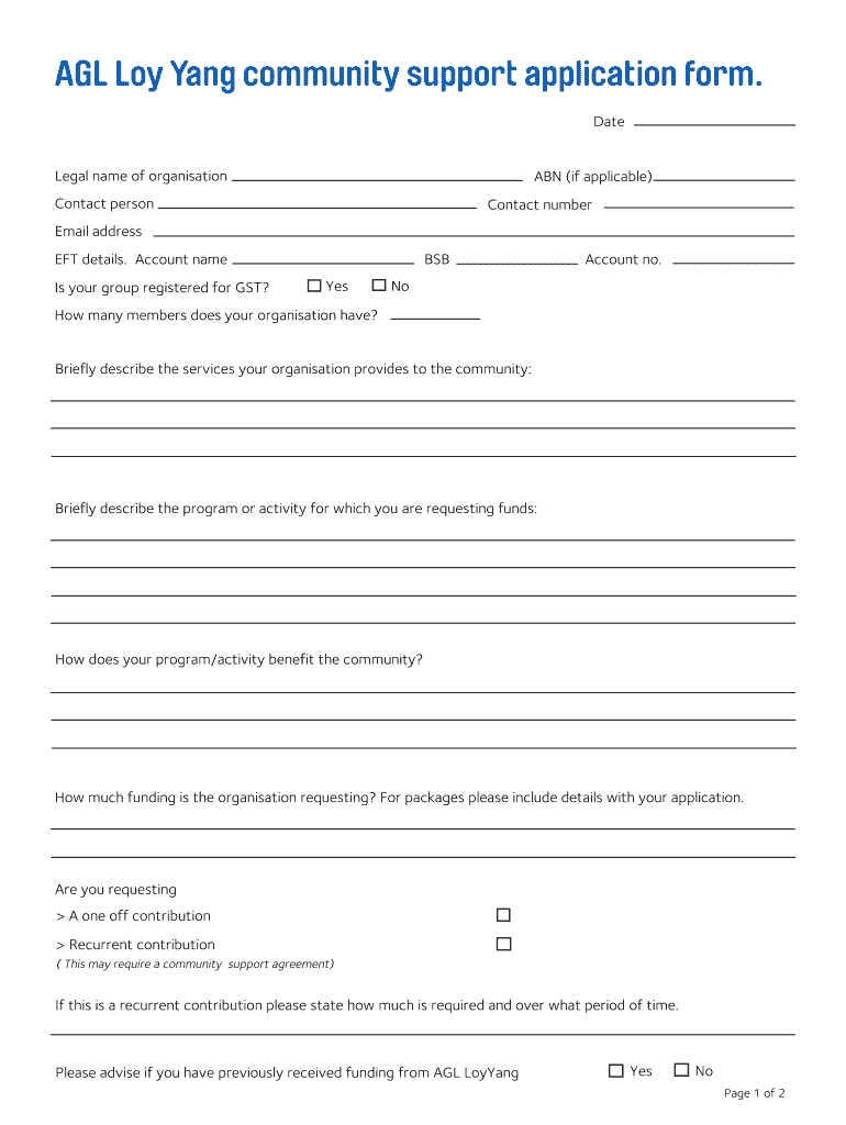 Get the free AGL Loy Yang bcommunity supportb application bformb