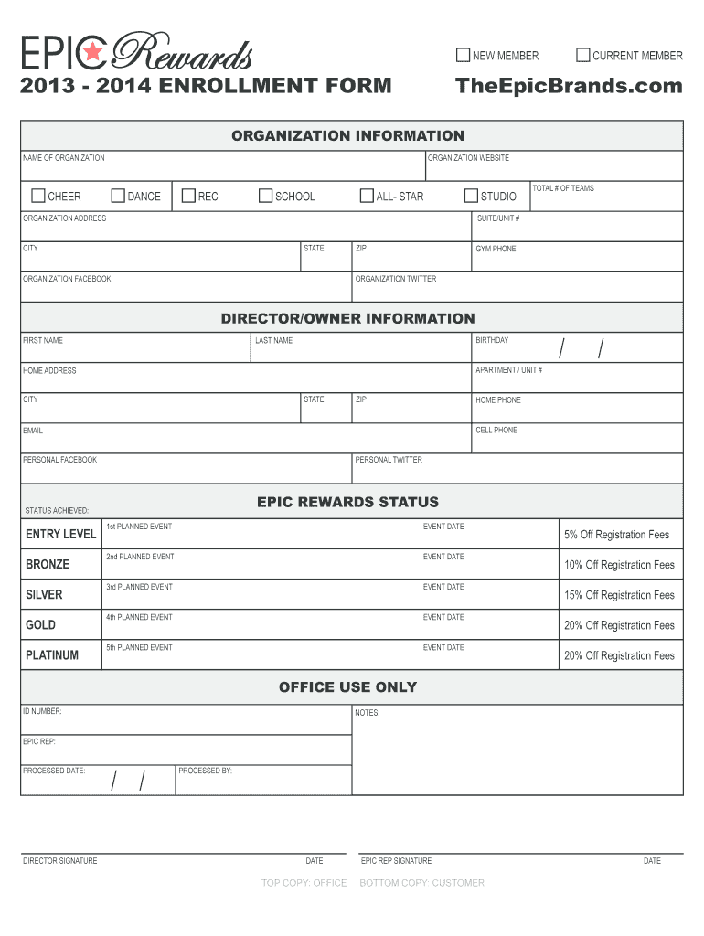 Get the free 2013 - 2014 ENROLLMENT FORM TheEpicBrands