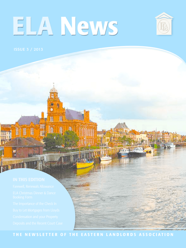 ELA News ISSUE 3 × 2013 IN THIS EDITION Farewell, Renewals Allowance ELA Christmas Dinner & Dance Booking Form The Importance of the Check In Buy to Let Mortgages from Lloyd's Condensation and your