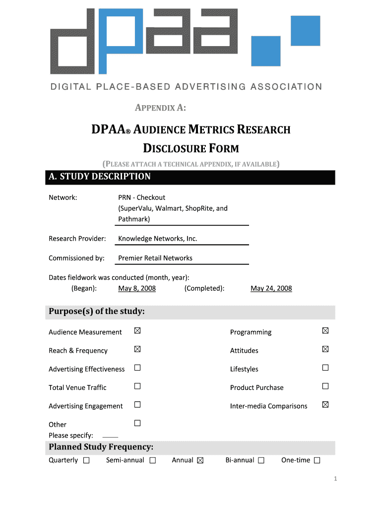 Get the free Audience Metrics Research Disclosure Form. Appendix A - dp-aa