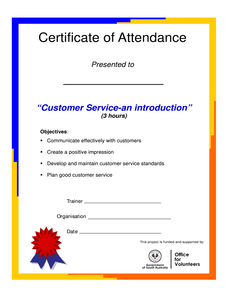 Certificate of Attendance Presented to rrrrrrrrrrr Customer Serviceman introduction (3 hours) Objectives: Communicate effectively with customers Create a positive impression Develop and maintain customer