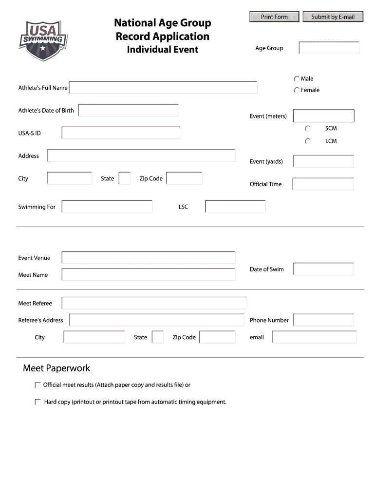 Any athlete who wants to officially claim or report their achievements for records in their age group needs to fill out the National Age Group Record Application.