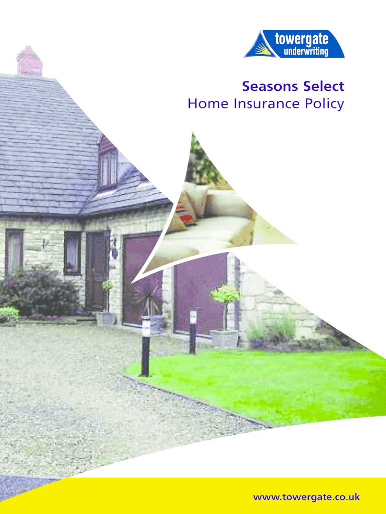 Seasons Select Home Insurance Policy www.towergate.co.uk Contents Welcome 4-5 Notice to Policyholders 6-7 Complaints Procedure 8-9 Definitions 10-11 Buildings Insurance 12-17 Contents Insurance 18-26