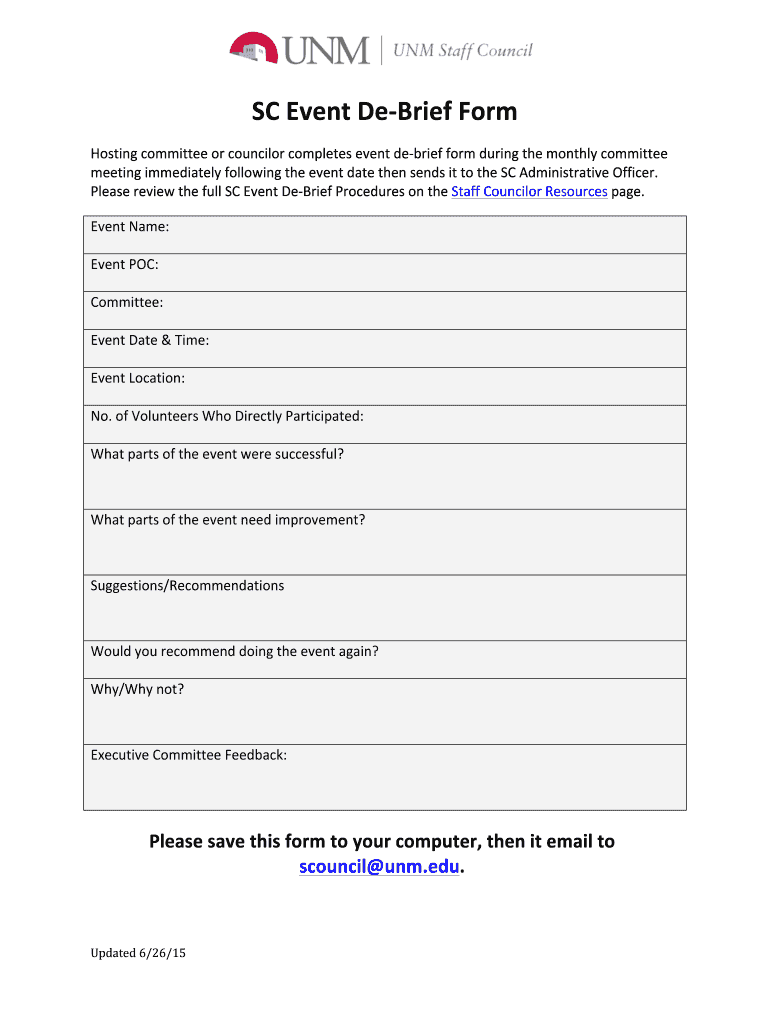 Get the free SCEventDeBriefForm - UNM Staff Council - staffcouncil unm