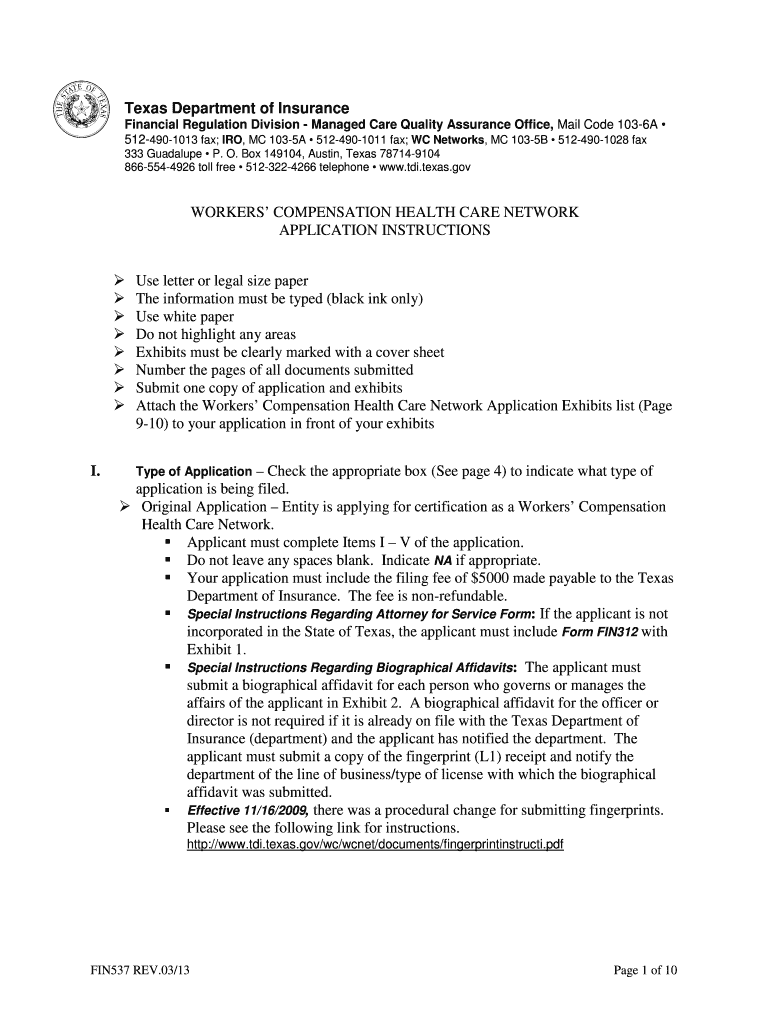 Get the free WORKERS’ COMPENSATION HEALTH CARE NETWORK APPLICATION - tdi texas