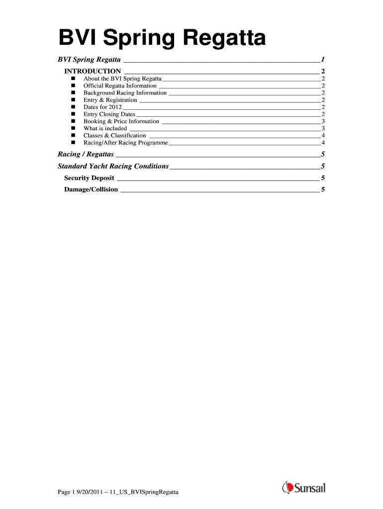 Get the free BVI Spring Regatta - Sunsail