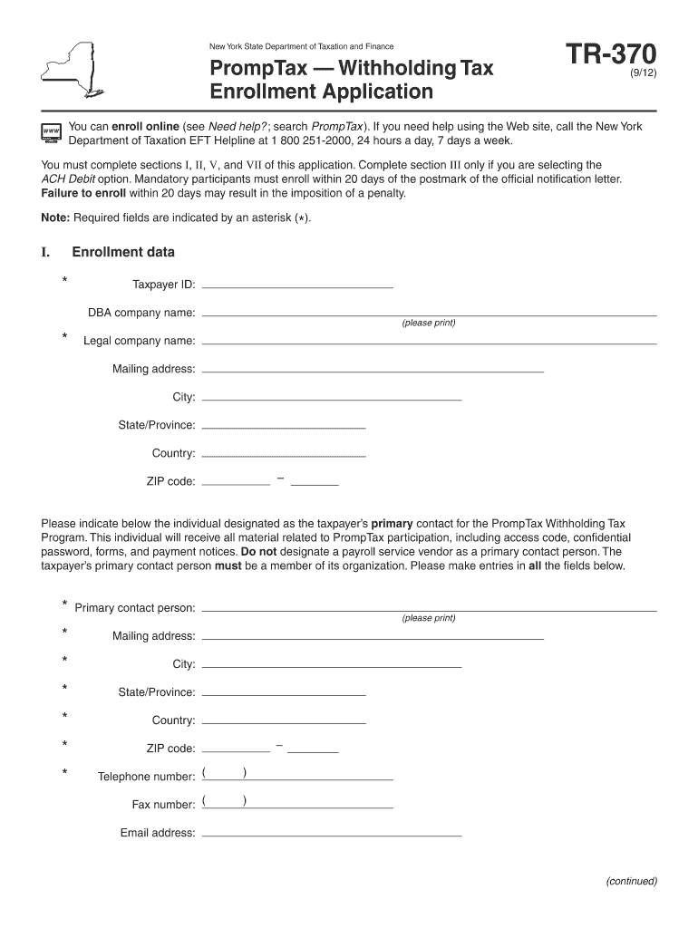 New York State Department of Taxation and Finance Prompt ax Withholding Tax Enrollment Application TR370 (9×12) You can enroll online (see Need help?; search Prompt ax×. If you need help using the