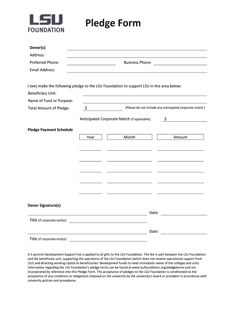Get the free Pledge Form One Page SC 2015 09 08 - LSU Foundation - lsufoundation