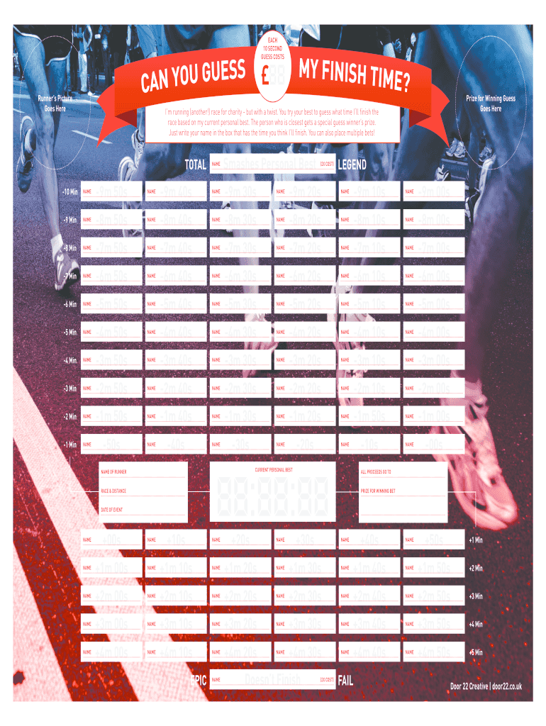EACH 10 SECOND GUESS COSTS Runners Picture Goes Herborize for Winning Guess Goes Harm running (another!) race for charity but with a twist. You try your best to guess what time I'll finish the race