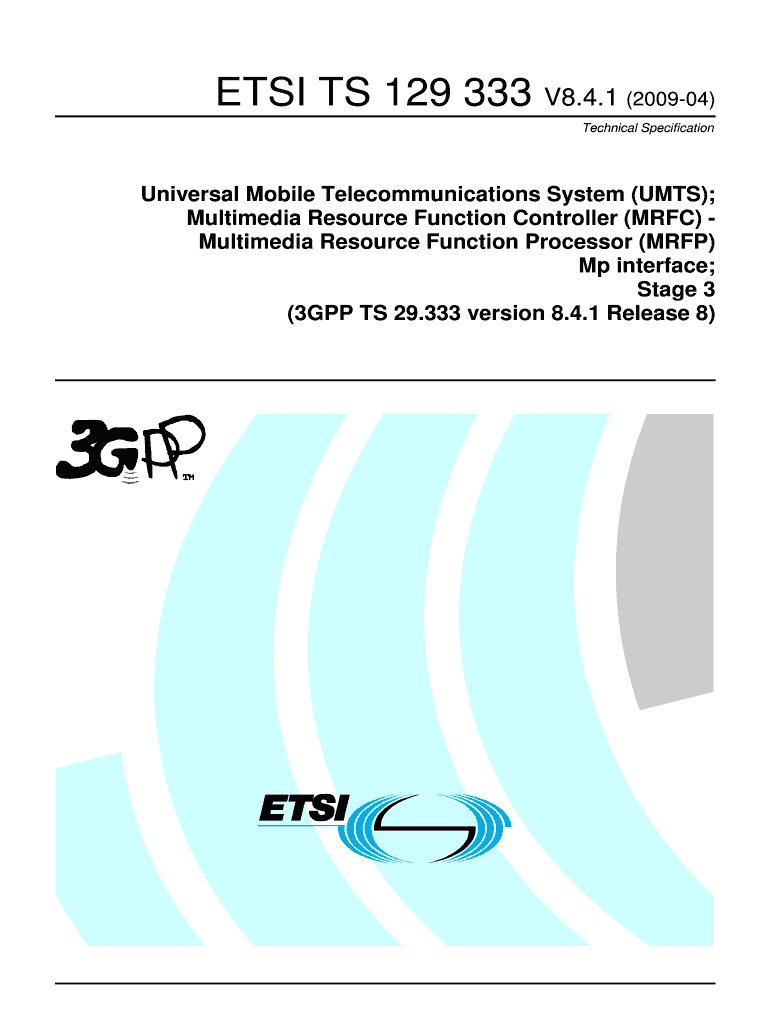 ETSI TS 129 333 V8.4.1 (2009-04) is a technical specification developed by the European Telecommunications Standards Institute (ETSI) that outlines the requirements and guidelines for the implementation of certain telecom services, particularly concerning mobile communication systems.