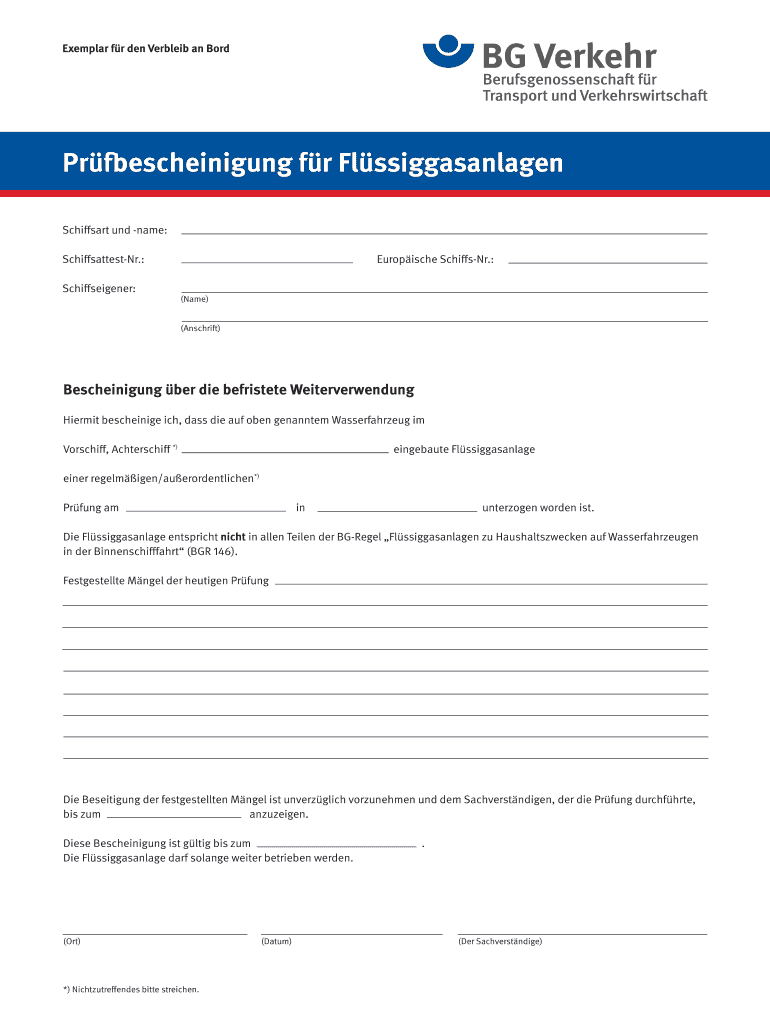 Wie fülle ich prüfbescheinigung flüssiggasanlage befristete weiterverwendung aus?